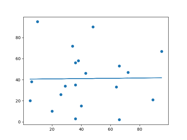 In the example below, the x-axis represents age, and the y-axis represents speed. We have registered the age and speed of 13 cars as they were passing a tollbooth. Let us see if the data we collected could be used in a linear regression: